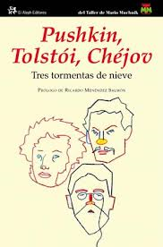 Hay días, en especial si llueve y estoy triste, en los que me apetece releer a los grandes escritores rusos. En este caso a Pushkin, Tolstói y Chejov que escriben cada uno de ellos un relato, recogidos en el libro que hoy traigo a Opticks, Tres tormentas de nieve, en los que la tormenta, como el título indica, ocupa un lugar preferente.